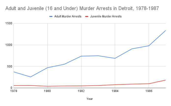 Adult and Juvenile (16 and Under) Murder Arrests in Detroit, 1978-1987