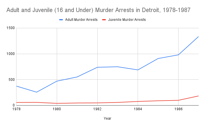 - Adult and Juvenile (16 and Under) Murder Arrests in Detroit, 1978-1987